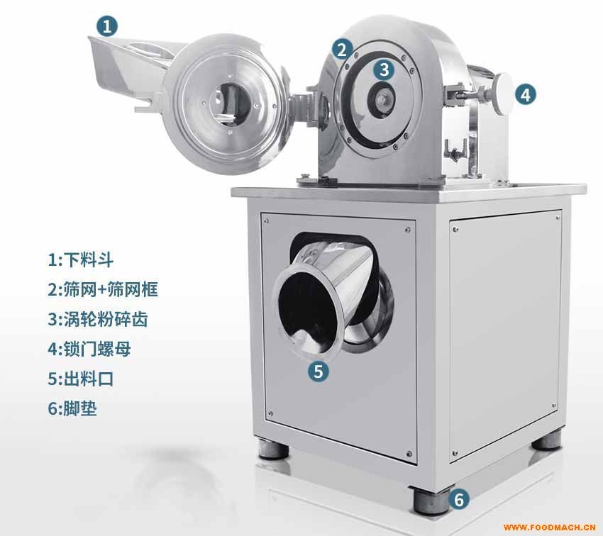 4、操作簡單。更換篩網(wǎng)可以控制出粉細度。