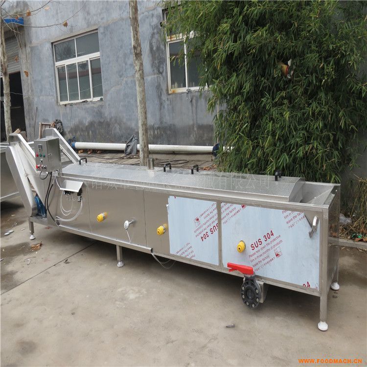 果蔬殺青機 果蔬漂燙殺青機 果蔬預煮殺青設備適用于豆芽、圓蔥、豆角、菠菜、油菜、菜花等蔬菜的蒸煮,可以快速的對蔬菜進行漂燙、殺青、蒸煮,物料放在可調速的不銹鋼網帶上,在傳送帶的作用下進入蒸煮槽,再由傳送帶帶到冷卻箱體內均勻冷卻,而達到了蒸煮冷卻的要求,提升了產量,降低了人工,應用范圍廣泛是果蔬食品加工行業(yè)的理想設備。
