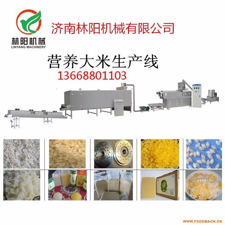 雜糧營(yíng)養(yǎng)米生產(chǎn)線是可采用大米、小米、黑米、蕎麥、燕麥、蔬菜、水果等各種五谷雜糧為原料,加入各種維生素、蛋白質(zhì)和礦物質(zhì)進(jìn)行處理,在擠壓機(jī)中擠壓、熟化、成形后重新生成新的強(qiáng)化大米、黃金米、蕎麥米、紫薯米等,其外形與天然的大米相似,但也有價(jià)值高而且更食用方便,可以煮粥還可以制作成速食米飯、速食粥等快餐類產(chǎn)品。