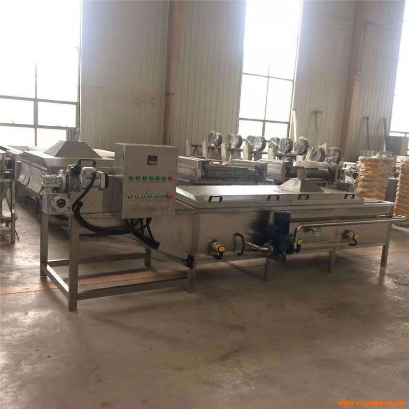 4、全程網(wǎng)帶輸送(不銹鋼網(wǎng)帶輸送,入料口處由過濾的水將物料推送之出料口,實現(xiàn)水溫統(tǒng)一)。