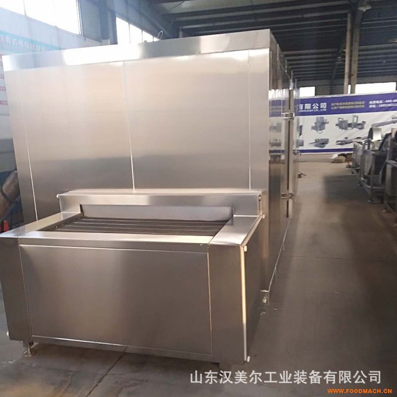 隧道式速凍機是一種結構較為簡單的速凍機,按使用的輸送帶形式的不同可分為網帶式和板帶式。