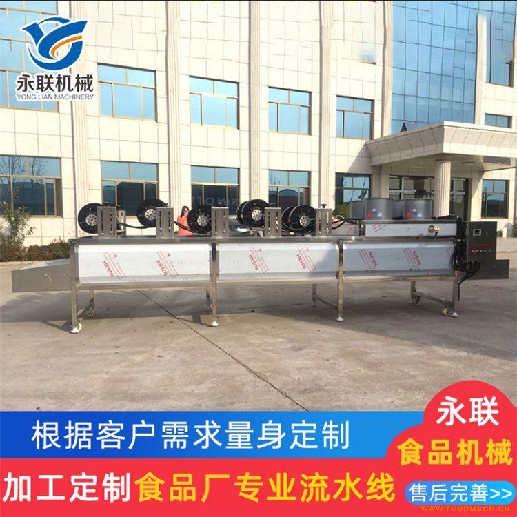 攤涼風(fēng)干機風(fēng)干采用大風(fēng)量低噪音風(fēng)機自然風(fēng)或暖風(fēng)吹干。風(fēng)干機可設(shè)計為多次翻轉(zhuǎn)輸送,并有逆反風(fēng)裝置防止出現(xiàn)吹干死角,或設(shè)計為平行式網(wǎng)帶輸送,風(fēng)干機吹干效果良好 設(shè)備采用變頻輸送,速度可調(diào),輸送平穩(wěn)。