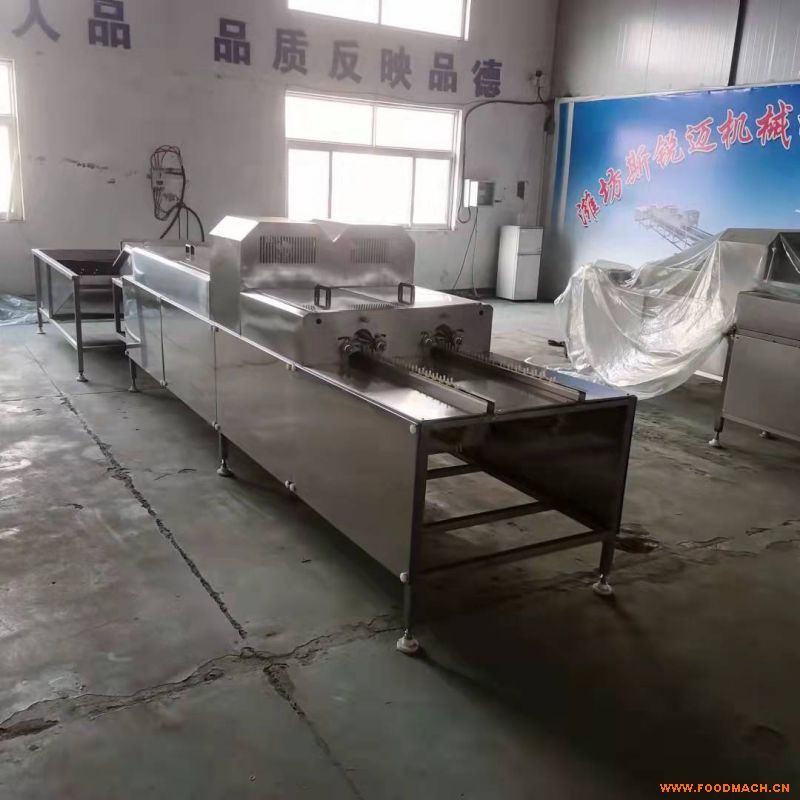 4、風(fēng)干后的蛋品在輸送滾輪的作用下下道工序進行噴油保鮮。