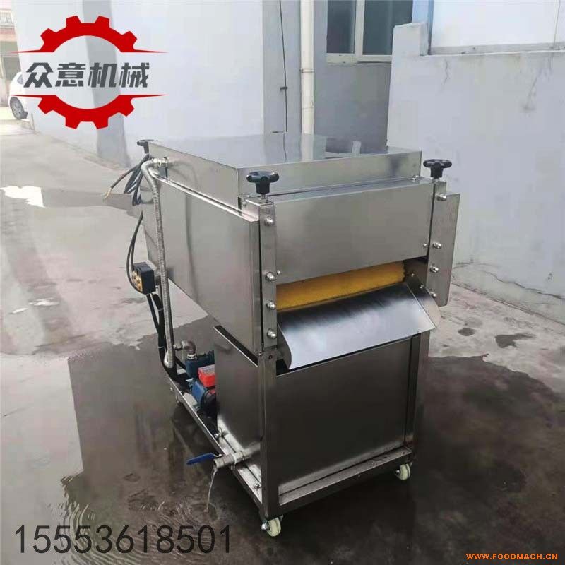 粽葉清洗機,蘆葦葉刷洗機,采用雙層毛刷刷洗的工作方式,將粽葉清洗干凈,適用于箬竹葉,蘆葦葉,槲樹葉等。粽葉清洗機由上下二排毛刷輥組成,刷輥轉(zhuǎn)動時,粽葉在兩排毛刷之間運動, 對粽葉的兩面同時進行滾刷,使粽葉達(dá)到清洗的目的。設(shè)備帶有水循環(huán)系統(tǒng),清洗完的水經(jīng)過濾再經(jīng)水泵抽到上方噴淋管進行二次被利用,以節(jié)約用水。操作工將粽葉喂入設(shè)備,進入上、下二層毛刷輥洗刷,由于組毛刷與后面毛刷有一定的速差,清洗時粽葉后端形成一定的拉力,從而模擬了人的動作,達(dá)到一次完成粽葉兩面清洗的目的,大大提高了清洗效率,降低人工成本。