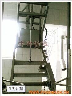 用途簡介:本機適用于預剝后的毛牛進行扯皮所用:采用液壓升降原理,由液壓站、油缸、