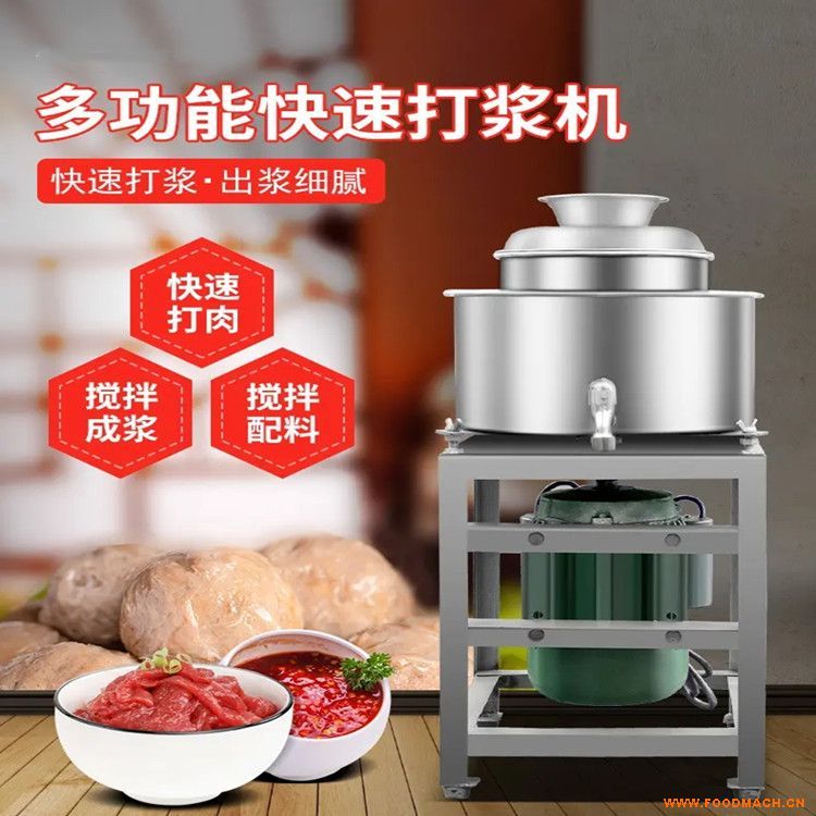 3、變頻調(diào)速打漿機(jī)是肉丸、貢丸、魚丸、臺(tái)灣烤腸等多種肉制品(特別為中高檔產(chǎn)品)的主要打漿設(shè)備,其產(chǎn)品的口感效果、組織結(jié)構(gòu)、成本控制等技術(shù)環(huán)節(jié)均在于打漿機(jī)的選用,所產(chǎn)的肉漿比高速類大的肉漿富有口感,不同普遍效果,工作穩(wěn)定,產(chǎn)量高質(zhì)量好,升溫低。