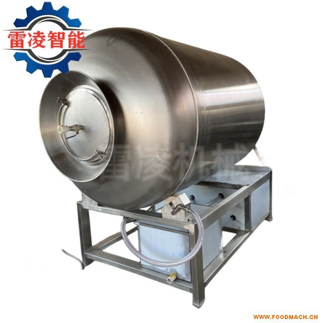 真空滾揉機(jī)的優(yōu)勢(shì):槳葉圓弧形,使腌料分布均勻,對(duì)產(chǎn)品表層不造成傷害,使產(chǎn)品的柔嫩性和外觀得到提高;可實(shí)現(xiàn)自動(dòng)出料,能減輕勞動(dòng)強(qiáng)度并提高生產(chǎn)率;圓形封頭,結(jié)構(gòu)合理,滾揉空間大,運(yùn)行平穩(wěn)、噪音小,性能可靠、操作簡(jiǎn)便;整體采用304不銹鋼制作,符合食品機(jī)械的衛(wèi)生標(biāo)準(zhǔn)。