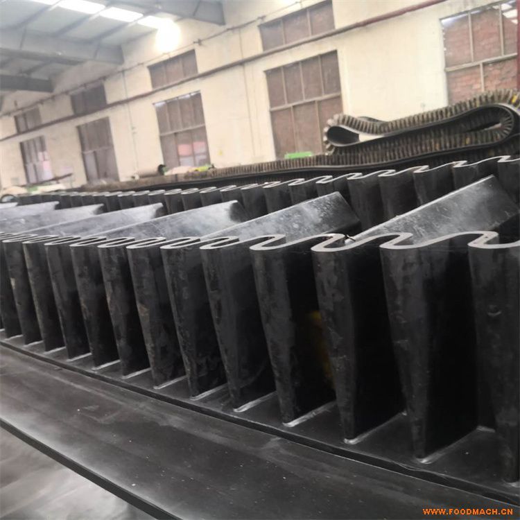 青島橡膠擋邊皮帶, 是由基帶、擋邊、橫隔板3部分組成。擋邊起防止物料測滑撒落的作用。為便于繞過滾筒,檔邊設(shè)計(jì)成波紋狀;橫隔板的作用是承托物料,為了實(shí)現(xiàn)大傾角輸送,采用T型TC型。檔邊和橫隔板是用二次硫化的方法與基帶連接的,具有很高的連接強(qiáng)度。用于輸送易散落的粉狀、粒狀、小塊狀、糊狀及液態(tài)狀物料。其特點(diǎn):適用于傾角0°~90°散裝物料的輸送;具有使用范圍廣、占地面積小、無轉(zhuǎn)運(yùn)點(diǎn)、減少土建投資、維護(hù)費(fèi)用低、維修容易輸送量大連續(xù)化、高效率、大傾角運(yùn)輸,操作安全,使用簡便,,運(yùn)費(fèi)低廉,并能縮短運(yùn)輸距離,降低工程造價(jià),節(jié)省人力物力等特點(diǎn);解決了普通帶和花紋帶所不能達(dá)到的輸送角度;還可根據(jù)使用環(huán)境,設(shè)計(jì)成完整、獨(dú)立的輸送系統(tǒng),避免了間斷輸送和復(fù)雜輸送的提升系統(tǒng)。可沿水平、傾斜、垂直和變角方向輸送各種散裝物料,從煤、礦石、沙子到化肥和糧食等。物料粒度不限,可從很小的粒度到400mm的大粒度,輸送量可從1立方米/小時(shí)到6000立方米/小時(shí)。