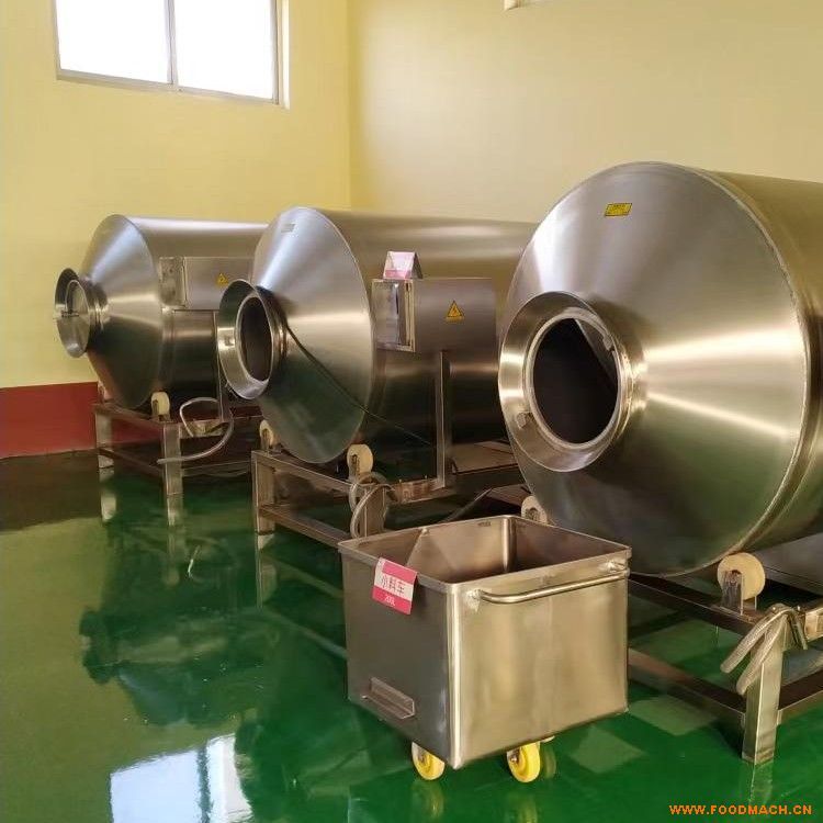 真空滾揉機(jī)是食品廠家用來(lái)生產(chǎn)肉食制品與低溫火腿生產(chǎn)的主要加工設(shè)備,他的用途是將嫩化后的原料肉通過(guò)滾揉、按壓和腌制,與輔料、添加劑等在真空狀態(tài)下拌合均勻(備注:肉料在真空狀態(tài)下呈現(xiàn)膨脹的狀態(tài))。