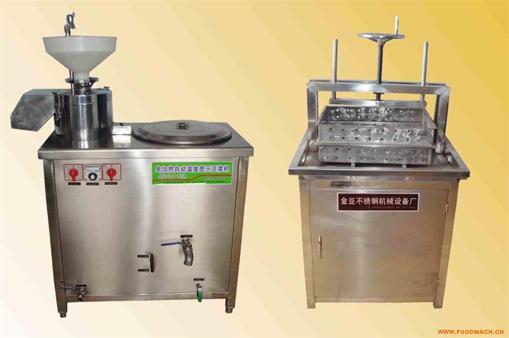 其次;在煮沸的豆乳中添加菜汁后煮沸時(shí)間不宜太長(zhǎng);以免損傷菜汁中的營(yíng)養(yǎng)成分。菜汁加入后一定要充分?jǐn)嚢,混合均勻,以免影響成品色澤?br> 3、用果蔬彩色豆腐機(jī)注意事項(xiàng)為了提高菜汁的利用效率,減少用量,可以考慮菜汁的濃縮。若菜汁濃縮至1/2,每100毫升豆乳由原來需加入16毫升改為只需加入8毫升即可,產(chǎn)品的質(zhì)量跟未濃縮時(shí)相差不大。蔬菜汁要在豆?jié){基本煮好后再加入,加入后煮沸2—3分鐘即可,時(shí)間過長(zhǎng)會(huì)使維生素變性,太短則達(dá)不到消毒滅菌的作用。煮好的豆?jié){與菜汁混合液進(jìn)入點(diǎn)漿工序時(shí),其溫度一般在90~C一95℃,豆?jié){濃度約為8度。根據(jù)環(huán)境溫度加入適量的冷水,使豆?jié){溫度降至70C一80℃,濃度相應(yīng)地降至7.5度左右時(shí)開始點(diǎn)漿。