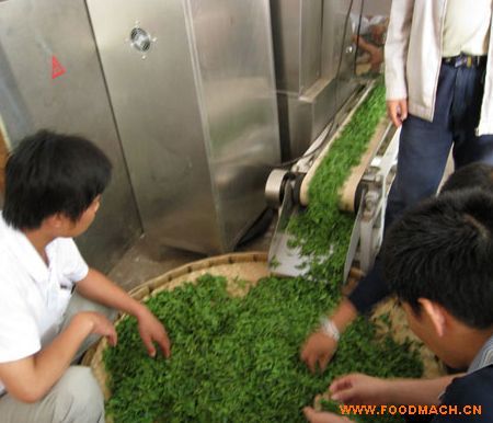 微波茶葉殺青干燥機,是一項利用微波能對茶葉進行殺青干燥的新技術,其原理是:茶葉在微波能的作用下其分子高速振蕩使茶葉自身整體升熱,茶葉溫度迅速上升到80C以上,達到殺青的目的。