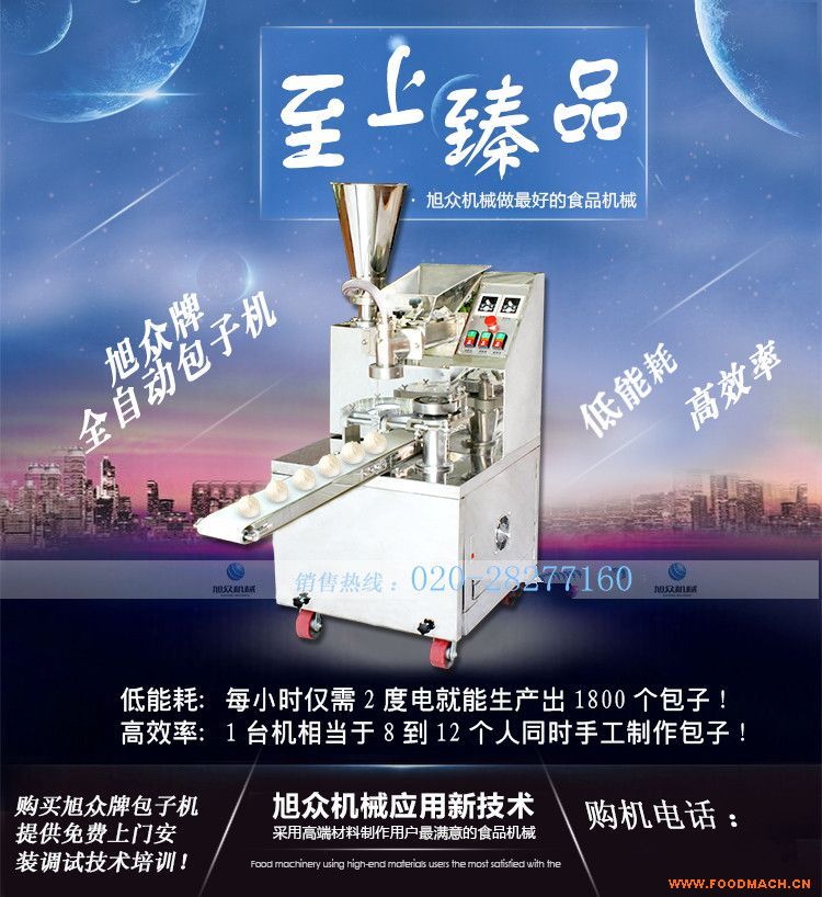◆ 旭眾包子機主要機件均采用不銹鋼制作,堅固耐用,外形美觀,符合國家食品衛(wèi)生標(biāo)準(zhǔn)。輕巧型機身,設(shè)計合理,結(jié)構(gòu)緊湊,挪動方便,不占空間。