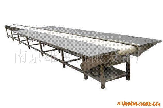 皮帶輸送機(jī)用于分割時產(chǎn)品的輸送?蚣転椴讳P鋼,皮帶為食品級,可無極調(diào)速。