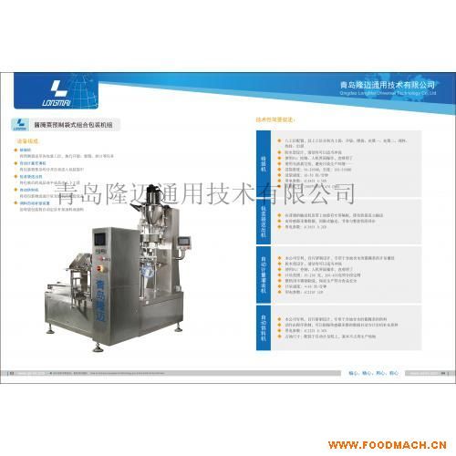 組成: 自動(dòng)供料機(jī)、自動(dòng)計(jì)量充填機(jī)、調(diào)料自動(dòng)補(bǔ)給裝置、包裝袋送出機(jī)、給袋機(jī)組成 |