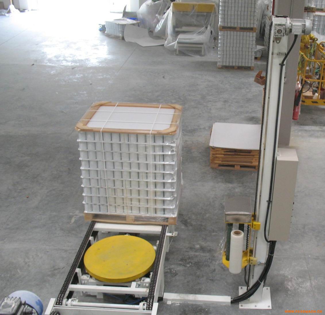托盤薄膜纏繞包裝機是指:通過轉(zhuǎn)盤旋轉(zhuǎn)帶動托盤貨物轉(zhuǎn)動,進而實現(xiàn)纏繞裹包的纏繞機。與碼垛機配合在線使用,實現(xiàn)產(chǎn)品流水線連線包裝生產(chǎn)。能夠提高產(chǎn)品的物流效率、減少運輸過程中的損耗。具有防塵、防潮、降低包裝成本等優(yōu)點。