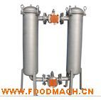雙聯(lián)袋式過濾器是由二臺袋式過濾器組成,系單層不銹鋼焊接結(jié)構(gòu),內(nèi)外表面拋光,頂部裝有放氣閥,以便工作時放氣之用。管道接頭采用脹合連接,經(jīng)0.8Mpa水壓試驗,三通外螺紋旋塞啟閉靈活,該設(shè)備結(jié)構(gòu)緊湊,操作方便,維修簡單。
