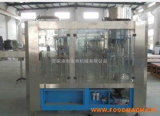 等壓灌裝、沖瓶、封口三合一體機(jī)用于聚脂瓶裝各種碳酸飲料的生產(chǎn)。在一機(jī)上實(shí)現(xiàn)沖瓶、灌裝、封蓋。整機(jī)設(shè)計(jì)科學(xué)合理,外形美觀,功能齊全,操作維修方便,自動(dòng)化程度高。綜合采用意大利、德國先進(jìn)技術(shù)。灌裝速度快,液面控制穩(wěn)。如:無瓶不灌裝,沖氣或灌裝時(shí)爆瓶則灌裝閥將自動(dòng)關(guān)閉,并有自動(dòng)沖洗等先進(jìn)自控技術(shù)。采用托瓶提升氣缸,油尼龍齒輪傳動(dòng),噪聲小,整機(jī)運(yùn)轉(zhuǎn)平穩(wěn)。采用磁力扭矩式擰蓋頭,實(shí)現(xiàn)抓蓋、擰蓋功能。擰蓋力矩?zé)o級(jí)可調(diào),具有恒力矩旋封塑蓋功能,且不傷蓋,封口嚴(yán)密可靠。水平回轉(zhuǎn)式氣力理蓋器,具有不損壞瓶蓋表面,料斗內(nèi)缺蓋發(fā)信號(hào)自動(dòng)補(bǔ)充等功能。DGCF系列等壓灌裝、沖瓶、封口三合一體機(jī)采用PLC電腦程序控制及人機(jī)界面觸摸屏按鈕,具有料缸內(nèi)液面自動(dòng)控制,無瓶不罐裝,無瓶不加蓋等功能,并有撥瓶星輪卡瓶錯(cuò)位停機(jī),蓋滑槽內(nèi)缺蓋停機(jī)等功能。