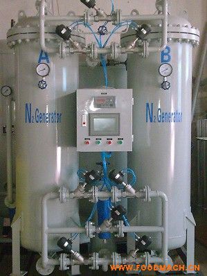 食品制氮機系統(tǒng)組成:壓縮空氣凈化組件、空氣儲罐、氣體分離裝置、氮氣緩沖罐。 壓縮空氣凈化組件
