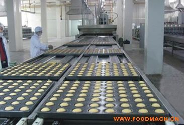 引進(jìn)國外全套先進(jìn)技術(shù),經(jīng)過技術(shù)攻關(guān),精心制造而成的多功能花色蛋糕設(shè)備,具有技術(shù)先進(jìn),結(jié)構(gòu)緊湊合理,機(jī)、電、氣一體化等優(yōu)點(diǎn)。全套設(shè)備包括:自動(dòng)攪拌、充氣連體送料系統(tǒng)、自動(dòng)吸紙杯系統(tǒng)、噴油系統(tǒng)、注料系統(tǒng)、撒布系統(tǒng)、轉(zhuǎn)彎送盤系統(tǒng)、熱風(fēng)循環(huán)烘爐系統(tǒng)、冷卻輸送系統(tǒng)、轉(zhuǎn)彎自動(dòng)送盤系統(tǒng)、自動(dòng)注料系統(tǒng)、自動(dòng)料盤分離系統(tǒng)、冷卻系統(tǒng)、烤盤自動(dòng)清洗系統(tǒng)等組成,該設(shè)備只要更換模盤及自動(dòng)料盤分離設(shè)備中模具和適當(dāng)調(diào)整其中設(shè)備,就可生產(chǎn)多種花色蛋糕食品。