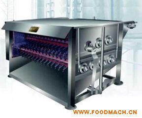 該設(shè)備是肉雞、鴨、鵝進(jìn)行脫毛工作的精脫設(shè)備,可單獨(dú)使用,為臥式轉(zhuǎn)輥結(jié)構(gòu),采用鏈條傳動(dòng),使上下兩排脫毛輥實(shí)現(xiàn)相對轉(zhuǎn)動(dòng),從而脫去羽毛,上下兩排脫毛輥的間距可以調(diào)整,以使用不同雞鴨鵝的需要。