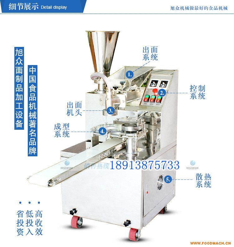 包子'是我國的傳統(tǒng)美食,它既是主食,又兼副食,更是上貢送禮的美味佳肴。據(jù)營養(yǎng)*分析,在國人的飲食習(xí)慣中,包子是*具營養(yǎng)價值、搭配全面、膳食平衡、*合理的美食。包含五 谷、五蔬、五禽、五味等幾乎所有餡料。包子皮對避免各種營養(yǎng)成份流失起到很好的保護作用,而且,經(jīng)酵母發(fā)酵后的包子皮又是碳水化合物、蛋白質(zhì)和維他命B族的來源,還含有核酸礦物 質(zhì)及具有保健功能的活性物質(zhì)。而手工制作包子是需要繁瑣的工序來完成的,即麻煩、效率又低,往往都出現(xiàn)供不應(yīng)求的現(xiàn)象