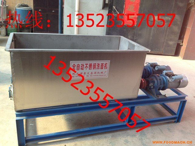 鑫源不銹鋼洗面機(jī)省時(shí)省力:將面粉直接倒入不銹鋼洗面機(jī)里面即可一次洗出面筋,和分離面漿,面筋蒸吃和煮吃都可以,面漿即可生產(chǎn)面皮和涼皮。