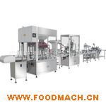 1、此自動化生產(chǎn)線由自動送瓶機(jī)、8頭活塞式灌裝機(jī)、下蓋夾旋式旋蓋機(jī)、鋁箔封口機(jī)、