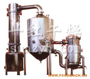 由循環(huán)式蒸發(fā)器改造而成,在上、下循環(huán)管各加一蝶閥,在蒸發(fā)室下錐體設(shè)置兩個(gè)蒸氣夾套;在列管加熱器和蒸發(fā)室間設(shè)旁通管,它有外循環(huán)和夾套式各自的優(yōu)點(diǎn)。濃縮開(kāi)始時(shí),利用高效、消沫好的外循環(huán)蒸發(fā)器除去大部分水分,*后由夾套加熱濃縮成比重1.4的中藥浸膏。