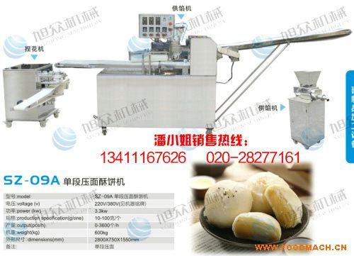 【 廣州旭眾酥餅機(jī),由一道搟面加餡主機(jī)、捏花成型機(jī)兩臺(tái)配套單機(jī)組成,與一般的酥餅機(jī)相比,該機(jī)器主機(jī)整合了搟面機(jī)與加餡機(jī),合整個(gè)主機(jī)更方便流暢。整個(gè)機(jī)組同食品接觸部分均采用優(yōu)質(zhì)不銹鋼,確保生產(chǎn)運(yùn)行平穩(wěn)、可靠、衛(wèi)生。】
