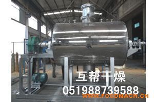 物料從殼體上方正中間加入,在不斷轉(zhuǎn)動(dòng)的耙齒的攪拌下,物料與殼體壁接觸時(shí),表面不斷更新,被干燥物料受到蒸汽間接加熱,而使物料水分氣化,氣化的水分由真空泵及時(shí)抽走。由于操作真空度較高,被干燥物料表面水蒸氣壓力遠(yuǎn)大于干燥機(jī)殼體內(nèi)蒸發(fā)空間的水蒸氣壓力,從而有利于被干燥物料內(nèi)部水分和表面水分的排出,有利于被干燥物料的水分子運(yùn)動(dòng),達(dá)到干燥目的。