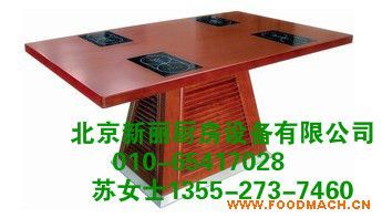 1、組成:火鍋?zhàn)赖男螤钆c普通桌子類似,桌面中間安裝有加熱功能的電磁爐。在桌面上開孔,以便裝配加熱電磁爐。