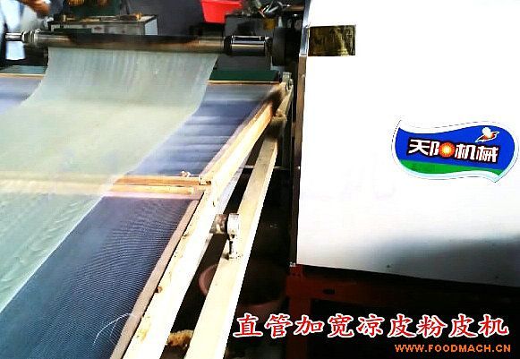 新式高產(chǎn)直管涼皮機由淀粉和漿機,電熱自熟涼皮機和自動接皮輸送機組成,它簡化了傳統(tǒng)苕皮生產(chǎn)工藝,節(jié)省了生產(chǎn)用工,降低了生產(chǎn)成本,是涼皮機械化生產(chǎn)加工理想的設(shè)備。新式高產(chǎn)直管涼皮機生產(chǎn)加工時,先有淀粉和漿機把淀粉與水按一定比例和成淀粉稀漿,再加入電熱自熟苕皮機內(nèi),通過機器的電加熱電子控溫裝置控制的水浴蒸煮箱把淀粉漿蒸煮熟化后,經(jīng)特殊的成型機頭吐步都接皮接條盤上,由皮帶輸送傳送到冷卻存放地進行老化冷卻后,調(diào)桿晾曬即可。新式高產(chǎn)直管涼皮機加工是涼皮厚薄均勻,顏色鮮亮好看,口感勁道耐煮,充分體現(xiàn)了涼皮食品的特性。該設(shè)備換原料和機頭還可生產(chǎn)苕粉,米粉,米豆腐,粉條,粉絲,涼粉,餌塊等產(chǎn)品,使廣大用戶換季不歇機,一年四季都有生意做,以較小的投資贏取較好的效益。天陽新式高產(chǎn)直管涼皮機型號:6FT-140BP,生產(chǎn)效率:150-180公斤/小時,攪拌和漿機2.2KW,涼皮機加熱器功率12KW,主電機7.5KW,皮帶輸送機0.75KW(調(diào)速),外形尺寸:淀粉和漿機7500*750*1000mm,粉條機1550*500*1250mm,皮帶輸送機4600*1200*850mm,價格17680元/套(含電機),運費根據(jù)運輸路程遠近另外計算。歡迎來人現(xiàn)場考察,購機現(xiàn)金支付或銀行匯款均可,免費培訓生產(chǎn)技術(shù),款到次日辦理物流托運,機器兩年內(nèi)因質(zhì)量問題出現(xiàn)的零配件損壞,免費郵寄更換。