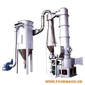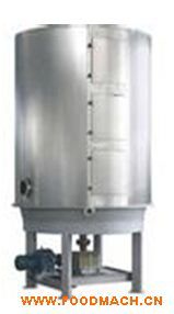 空氣經(jīng)加熱凈化后,由引風(fēng)機(jī)從下部導(dǎo)入,穿過(guò)料斗的孔網(wǎng)板。在工作室內(nèi),經(jīng)攪拌和負(fù)壓作用形成流態(tài)化,水份快速蒸發(fā)后隨著排氣帶走,物料快速干燥。