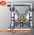 QBY系列氣動隔膜泵是一種新型輸送機(jī)械,是目前國內(nèi)*新穎的一種泵類。采用壓縮空氣為動力源,對于各種腐蝕性液體,帶顆粒的液體,高粘度、易揮發(fā)、易燃、劇毒的液體,均能予以抽光吸盡。其性能參數(shù)與聯(lián)邦德國的WLLDENPVMPS、美國的MARIOWPUMPS相近。唐瑪公司共有八種規(guī)格直徑:φ10mm(3/8’)、φ15mm(1/2’)、φ25mm(1’)、φ40mm(11/2’)、φ50mm(2’)、φ65mm(21/2’)、φ80mm(3’)、φ100mm(4’)。四種材質(zhì):鋁合金、鑄鐵、不銹鋼、工程塑料。隔膜泵根據(jù)不同液體介質(zhì)分別采用丁晴橡膠、氯丁橡膠、氟橡膠、聚四氟乙烯隔膜。以滿足不同用戶的需要! 該泵自1986年投產(chǎn)以來,已被國內(nèi)一千多家石油、化工、電子、陶瓷、紡織系統(tǒng)單位采用,安置在各種特殊場合,用來抽送種常規(guī)泵不能抽吸的介質(zhì),均取得了滿意的效果。