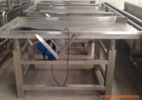 2、主要工作原理:物料由入料端進入,經(jīng)過振動偏心裝置震動前進,能更好的實現(xiàn)物料盡快脫去大部分水珠,然后進入風干線或直接裝箱,大大縮短物料的干燥時間,提高產(chǎn)品的工作效率,該機也可用于物料的篩選、分級、布料。