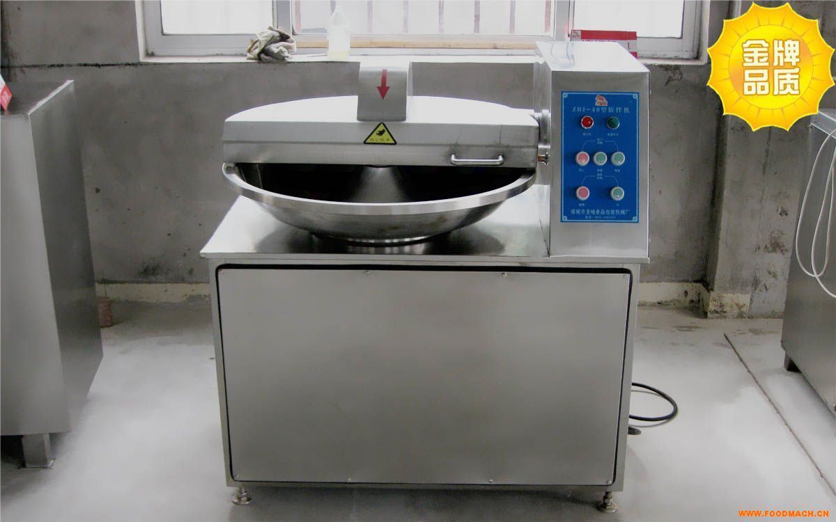 斬拌機(jī)是肉制品生產(chǎn)工藝中的關(guān)鍵設(shè)備,高速旋轉(zhuǎn)的斬拌刀可把原料肉斬拌成細(xì)膩的糜狀,同時(shí)可以把其它輔料攪拌均勻,是賓館、酒家、食堂、肉類加工場等單位所不可缺少的肉類加工機(jī)械。