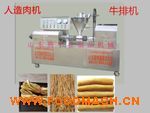豆皮機, 牛排雞翅機采用*新技術(shù)設(shè)計,溫度是數(shù)顯自動控溫,加溫或降溫均有信號燈顯示,電流電壓大小開機均有顯示,自動喂粉可以調(diào)速,傳動部分是本廠生產(chǎn)的豆制品機械專用減速機,電機架是鋼板可調(diào)型,機器底部用的高檔跑輪,便于移動,冷卻部分是自動循環(huán)水裝置,底部設(shè)有大容量的儲水箱,加溫部分是保溫節(jié)能型,正常生產(chǎn)可節(jié)約用電量的30%,其實用電費和燒煤基本持平。本機是一機多用,可通過不同模具筒生產(chǎn)多種花樣的食品,如:素牛排、素雞翅、素海螺、素肉條、素雞脯肉、素肉丁、豆蝦、豆腸、豆絲、豆花、豆筋等十多種產(chǎn)品,如用戶需要其它新花樣,可來我廠進行加工制作。 生產(chǎn)出來的產(chǎn)品可炒、烹、燉、炸、涼拌,還可用作麻辣小食品原料。
