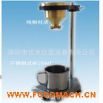 2. 倒入被測液:用手指堵住杯的流出孔,(如有腐蝕性液體可用杯上檔塊)將被測液慢慢倒入杯內(nèi),直至液面凸出杯的上邊緣,如有氣泡,使氣泡浮到面上,用清潔的平玻璃板沿邊緣平推一次,除去凸出的液面及氣泡,使被測液的水平面與流量杯上邊緣在一水平面上。