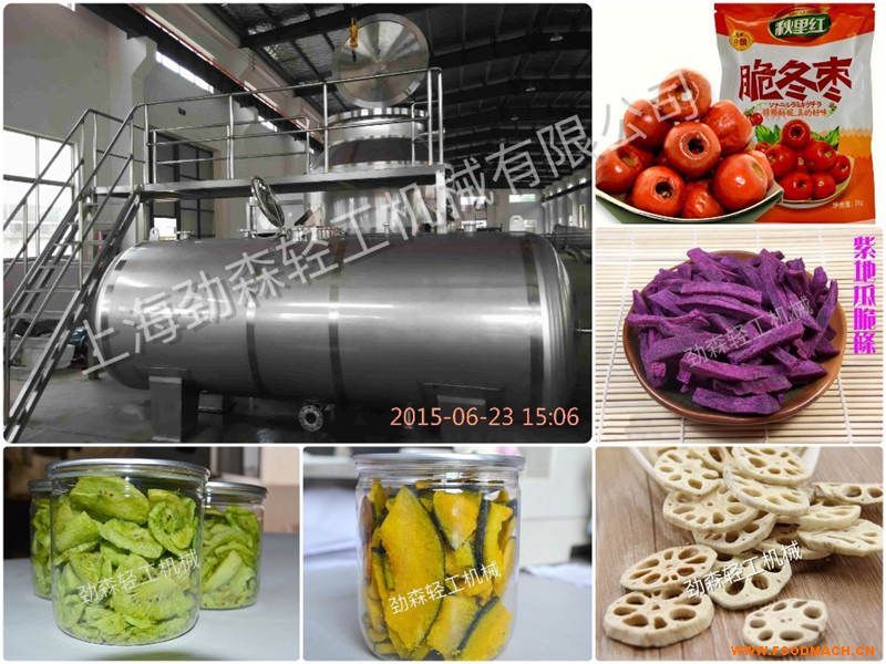 上海勁森輕工機(jī)械有限公司針對(duì)市場休閑食品的消費(fèi)趨向,針對(duì)休閑食品的綠色健康化要求,研發(fā)設(shè)計(jì)出國內(nèi)首款適用、經(jīng)濟(jì)、操作簡單、生產(chǎn)效率高的大型休閑油炸食品加工設(shè)備---雙室低溫真空油炸機(jī)。
