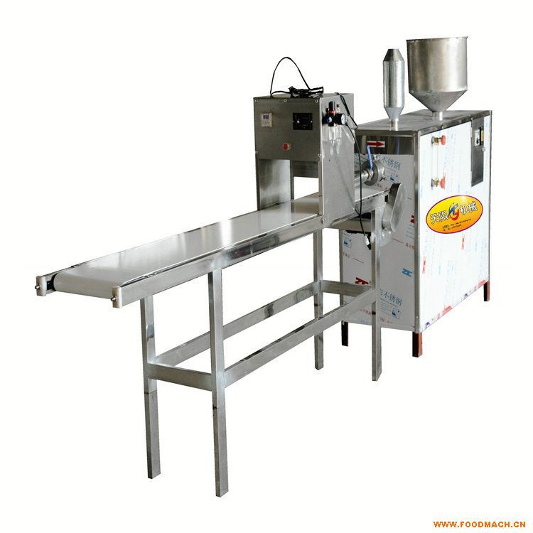 天陽米豆腐機(jī)結(jié)構(gòu)新穎、操作簡單、采用智能溫控熟化成型新工藝,米漿經(jīng)水箱里的熱水水浴熟化,再由螺旋絞龍擠壓聚合而成,出機(jī)即熟,一次成型,無須再蒸煮,節(jié)省能源、耗電少,不存在傳統(tǒng)工藝中的糊鍋、焦鍋現(xiàn)象。天陽米豆腐機(jī)還可以使用各種淀粉或面粉生產(chǎn)加工粉條,粉絲,粉皮,扁粉,川粉,肥羊粉,河粉,卷粉(腸粉)涼皮、涼粉、東北大拉皮、面皮、酸漿米線、酸漿馇條等,是專為照明電用戶,市場門面現(xiàn)加工戶設(shè)計生產(chǎn)的新型米面食機(jī)械。