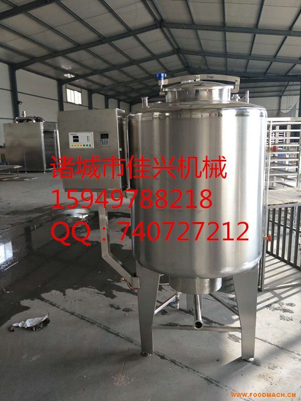 酸奶巴氏殺菌機(jī)滅菌溫度、速度可根據(jù)工藝要求設(shè)定。酸奶巴氏殺菌機(jī)具有殺菌效果好,噪音小,速度可調(diào)經(jīng)久耐用,安全可靠,溫度能自動(dòng)控制,維修方便等特點(diǎn),諸城佳興機(jī)械生產(chǎn)的鮮奶巴氏殺菌機(jī)由底座、水箱、奶罐、循環(huán)水泵、循環(huán)水路六部分組成,其中水箱分為兩層:上層為熱水箱,下層為冷水箱,水箱后部由液位計(jì)、循環(huán)水路組成,奶罐由奶罐主體、放奶口、頂蓋、支撐架四部分組成,其中頂蓋由減速機(jī)、攪拌器、溫度表、內(nèi)視鏡、放氣孔五部分組成。奶罐分為三層,里面是裝奶層,中間是水循環(huán)層,*外面是保溫層。