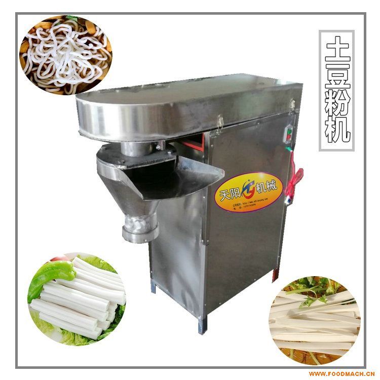 粉耗子(QQ面,火鍋粉,土豆水晶粉,土豆鮮粉,鍋?zhàn)臃郏?是用優(yōu)質(zhì)馬鈴薯淀粉精制而成的,采用先進(jìn)工藝及科學(xué)配方精制而成,它具有久煮不糊鍋、炒制不粘連等優(yōu)點(diǎn),潔白晶瑩、筋道滑爽、味道清鮮,富含多種營(yíng)養(yǎng)元素,食用方便,可拌涼菜,燉菜,涮火鍋等,是餐桌上不可缺少的美味菜肴。天陽(yáng)粉耗子機(jī)結(jié)構(gòu)緊湊,操作簡(jiǎn)便、干凈衛(wèi)生,與原料接觸部分均采用304不銹鋼制作,利用照明電電機(jī)帶動(dòng),采用土豆生粉打芡拌團(tuán)工藝,減速齒輪箱帶動(dòng)螺旋推進(jìn)器揉壓擠出成型,節(jié)省勞動(dòng)力,出粉快,產(chǎn)量高,生產(chǎn)出的粉耗子可下熱水鍋煮至七八成熟后入冷水冷卻后包裝,也可直接冷凍包裝出售。生產(chǎn)出的產(chǎn)品質(zhì)量好。天陽(yáng)粉耗子機(jī)換不同模具可生產(chǎn)花形空心、片狀粉耗子,實(shí)心土豆鮮粉,也可生產(chǎn)異型花形火鍋粉產(chǎn)品,大大降低了投資成本,使廣大用戶可以花較少的錢生產(chǎn)出多種的產(chǎn)品。投資天陽(yáng)粉耗子機(jī),市場(chǎng)前景好,投資小,回報(bào)大,是發(fā)家致富的好途徑。天陽(yáng)粉耗子機(jī)TFH-120型,適用動(dòng)力3KW(220V電,380V電均可),產(chǎn)量150-200公斤/小時(shí),外形尺寸1000*600*1200mm,重量90kg,價(jià)格6500元,不含運(yùn)費(fèi)。到廠購(gòu)機(jī),免費(fèi)提供技術(shù)配方,現(xiàn)場(chǎng)培訓(xùn)生產(chǎn)技術(shù)。匯款購(gòu)機(jī),隨機(jī)有技術(shù)工藝和配方,如生產(chǎn)中有疑難問(wèn)題,可打技術(shù)老師咨詢。兩年內(nèi)機(jī)器出現(xiàn)質(zhì)量問(wèn)題,保修保換。