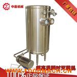 一般物料由離心泵泵入滅菌機中冷熱料熱交換裝置中而得到預熱,再經(jīng)過充滿高壓的高溫桶,物料被迅速加熱到殺菌溫度并在此前后保持約3秒,其中的微生物及酶類很快被殺滅。物料出高溫桶后通過與冷料的熱交換獲得冷卻,一般溫度低于65℃。如果下道工序需要提高溫度則可通過調(diào)節(jié)角式截止閥或循環(huán)等途徑達到要求,反之則通過接入冷卻水來降低出料溫度。出料通過節(jié)流閥控制,此閥能使在維持一定壓力下物料的沸點高于*高溫度。正常生產(chǎn)時調(diào)節(jié)此閥,由泵的推動力克服彈簧壓力而產(chǎn)生背壓控制流量,在清洗滅菌機時則應(yīng)全部開啟。循環(huán)貯槽可用來配制酸堿溶液,對盤管內(nèi)壁積垢進行有效清洗。由于同時采用不銹鋼三通旋塞,流量可以得到適當調(diào)節(jié)。