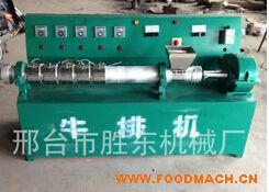 多功能大豆蛋白擠出機(jī)是一機(jī)多用,可通過不同模具筒生產(chǎn)多種花樣的食品,如:素牛排、素雞翅、素海螺、素肉條、素雞脯肉、素肉丁、豆蝦、豆腸、豆絲、豆花、豆筋等十多種產(chǎn)品,如用戶需要其它新花樣,可來我廠進(jìn)行加工制作。 生產(chǎn)出來的產(chǎn)品可炒、烹、燉、炸、涼拌,還可用作麻辣小食品原料。 生產(chǎn)工藝流程: