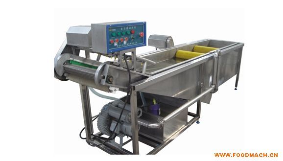 氣泡翻浪清洗機(jī)的特性及用途 1、設(shè)備除電機(jī)、軸承等標(biāo)準(zhǔn)件外均采用不銹鋼SUS304/2B材料制作,完全符合出口食品衛(wèi)生要求。設(shè)備中設(shè)有氣泡發(fā)生裝置,使物料呈翻滾狀態(tài),去除產(chǎn)品表面農(nóng)殘的功效,同時(shí)可加入適量的藥劑,進(jìn)行消毒固色。漂浮物可以從溢流槽溢出,沉淀物從排污口排出,以達(dá)到清洗的目的。具有洗潔凈高、節(jié)能、節(jié)水、設(shè)備穩(wěn)定可靠等特點(diǎn)。 1、適用于:蔬菜、水果、水產(chǎn)品等顆粒狀、葉狀、根莖類產(chǎn)品清洗、浸泡、殺菌消毒及固色等。 2、本機(jī)輸送部分采用SUS304不銹鋼網(wǎng)帶,運(yùn)行平穩(wěn)、使用壽命長(zhǎng)等特點(diǎn),符合食品衛(wèi)生要求。 3、操作簡(jiǎn)單,維修方便、方便連線。