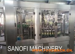 玻璃瓶啤酒生產(chǎn)線設(shè)備概述:按照玻璃瓶啤酒包裝工藝要求,在消化吸收國內(nèi)外先進(jìn)技術(shù)的基礎(chǔ)上,研制開發(fā)了*新型的玻璃瓶啤酒包裝設(shè)備,可為廣大啤酒企業(yè)提供全套高效的啤酒灌裝生產(chǎn)線。 玻璃瓶啤酒生產(chǎn)線設(shè)備特點(diǎn):1. 灌裝閥采用高精度機(jī)械灌裝閥,具有無瓶不抽真空機(jī)構(gòu)。2. 外置式機(jī)械閥結(jié)構(gòu),閥體內(nèi)無彈簧和密封件。3. 具有兩次抽真空能力,配有高壓激泡裝置。4. 傳動采用開式齒輪和齒輪箱組合傳動。采用變頻無級調(diào)速,調(diào)速范圍大。5. 本機(jī)的傳動設(shè)有潤滑脂自動潤滑裝置,可按需要定時定量給各潤滑點(diǎn)供油。傳動效率高、噪聲小、壽命長。6. 在沖氣或灌酒時,由于瓶質(zhì)量問題而引起的爆瓶,則酒閥自動關(guān)閉,并配有自動破瓶沖洗裝置。7. 采用全不銹鋼磁性料斗,皇冠蓋的理蓋、下蓋、進(jìn)蓋均由磁力傳送,在運(yùn)行中蓋不易變形,下蓋量大且通暢,壓蓋可靠并有自動卸荷功能,降低破瓶率。8. 對中導(dǎo)向采用雙導(dǎo)桿式對中,有預(yù)罩功能。進(jìn)出瓶平穩(wěn)可靠。9. 酒缸及壓蓋頭的升降為電動升降,以適應(yīng)設(shè)計范圍內(nèi)不同高度的瓶型。10. 灌裝缸內(nèi)物料液位高度由電探針控制,缸液位穩(wěn)定,灌裝可靠。玻璃瓶灌裝機(jī)三合一 玻璃瓶啤酒灌裝機(jī) 玻璃瓶碳酸飲料灌裝機(jī)