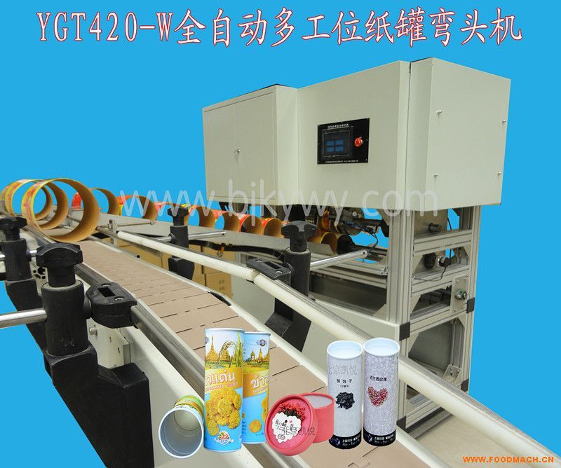 1.本機為五工位紙管彎頭工序設(shè)備,從進管自動檢測,撥盤對紙管精準(zhǔn)定位,機械式彎頭模具自動進給全過程由PLC及伺服系統(tǒng)自動控制,紙管由導(dǎo)槽連續(xù)不斷進入,設(shè)備無間歇高效工作