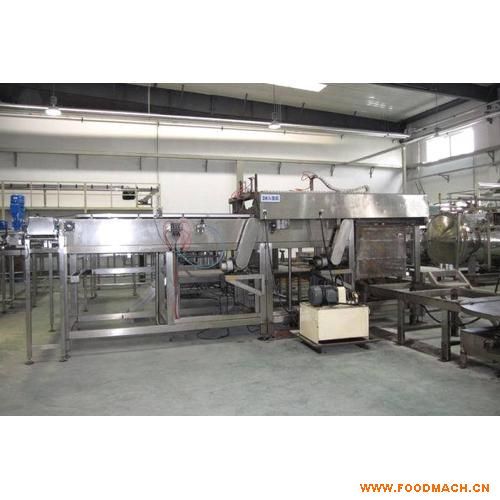 本機(jī)型主要應(yīng)用于對各種馬口鐵飲料罐、各種罐頭及二次滅菌的塑料瓶飲料等在殺菌前進(jìn)行自動裝籠作業(yè),通過網(wǎng)式輸送機(jī)(網(wǎng)鏈?zhǔn)展奁脚_)自動收罐排列,利用特有的分罐裝置將完成灌裝封口后的實(shí)罐進(jìn)行分罐整列,再由下而上一層一層自動裝迭于殺菌籠(籃)里,再通過電動臺車和籠車軌道傳送至殺菌鍋進(jìn)行殺菌,整個裝籠過程隔層板自動釋出、自動上升,自動分罐、裝罐,自動下降、滿籠自動停止裝罐,取代人工裝罐方式,節(jié)省人力,大大提高生產(chǎn)效率。 完善的配置機(jī)構(gòu) 1. 隔層板(耐高溫塑料隔板)自動拆板釋出機(jī)構(gòu) 2. 隔層板定位裝置 3. 自動分罐裝置 4. 裝籠送罐定位裝置 5. 主機(jī)裝籠液壓升降臺 生產(chǎn)能力:可根據(jù)用戶需求設(shè)計(jì),*大可達(dá)1000罐/分鐘 PLC可編程電腦自動控制器、光電開關(guān)、行程開關(guān)、氣動控制等均采用德國、日本等*品牌產(chǎn)品 可根據(jù)各種方形籠子尺寸進(jìn)行設(shè)計(jì)生產(chǎn)裝籠機(jī) 適用范圍:各種馬口鐵罐飲料、各種罐頭及二次滅菌的塑料瓶飲料等在殺菌前進(jìn)行裝籠 外形尺寸:長7.7m*寬1.4m*高1.8m 動力參數(shù):3*380v 7.7kw |