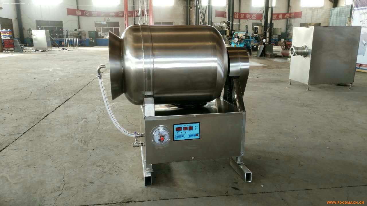 真空滾揉機(jī),真空腌制機(jī),呼吸式真空滾揉機(jī)是通過(guò)內(nèi)部帶有傾斜漿葉的滾筒帶動(dòng)桶內(nèi)原料運(yùn)動(dòng),從而對(duì)原料進(jìn)行拍打,使原料入味。真空滾揉機(jī)利用真空泵,將滾筒內(nèi)抽成真空狀態(tài),這樣肉制品細(xì)胞會(huì)由于壓強(qiáng)差異,在細(xì)胞膜內(nèi)外產(chǎn)生滲透壓,細(xì)胞就會(huì)如同呼吸一樣,自動(dòng)吸取腌漬液。真空腌制機(jī)可以減少產(chǎn)品的腌制時(shí)間,縮短了產(chǎn)品的生產(chǎn)周期。