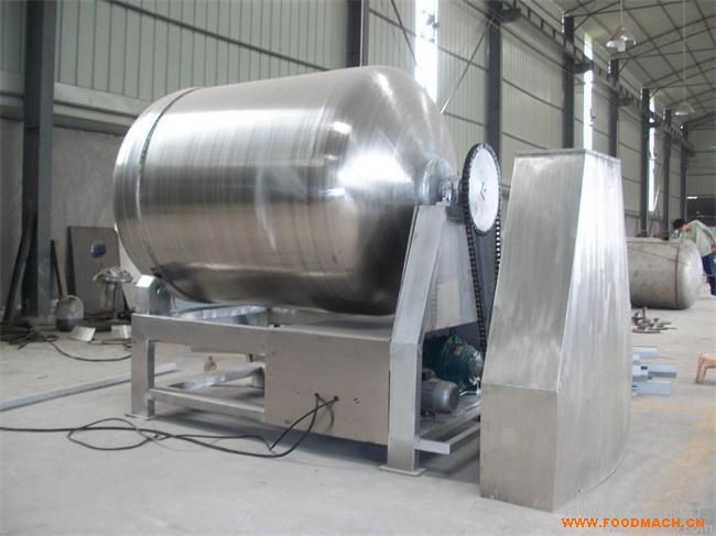 真空滾揉機(jī),真空腌制機(jī),呼吸式真空滾揉機(jī)是通過(guò)內(nèi)部帶有傾斜漿葉的滾筒帶動(dòng)桶內(nèi)原料運(yùn)動(dòng),從而對(duì)原料進(jìn)行拍打,使原料入味。真空滾揉機(jī)利用真空泵,將滾筒內(nèi)抽成真空狀態(tài),這樣肉制品細(xì)胞會(huì)由于壓強(qiáng)差異,在細(xì)胞膜內(nèi)外產(chǎn)生滲透壓,細(xì)胞就會(huì)如同呼吸一樣,自動(dòng)吸取腌漬液。真空腌制機(jī)可以減少產(chǎn)品的腌制時(shí)間,縮短了產(chǎn)品的生產(chǎn)周期。